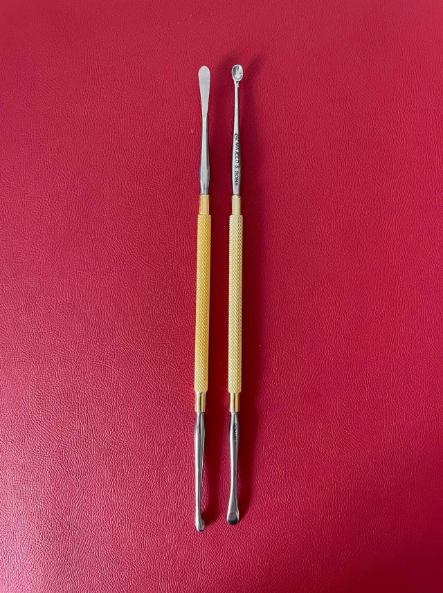 👉 Cây bóc tách 1 đầu, 1 đầu nạo ổ (cuvet) là dụng cụ kết hợp hai chức năng: đầu bóc tách dùng để tách mô mềm hoặc tạo khoang một cách nhẹ nhàng
