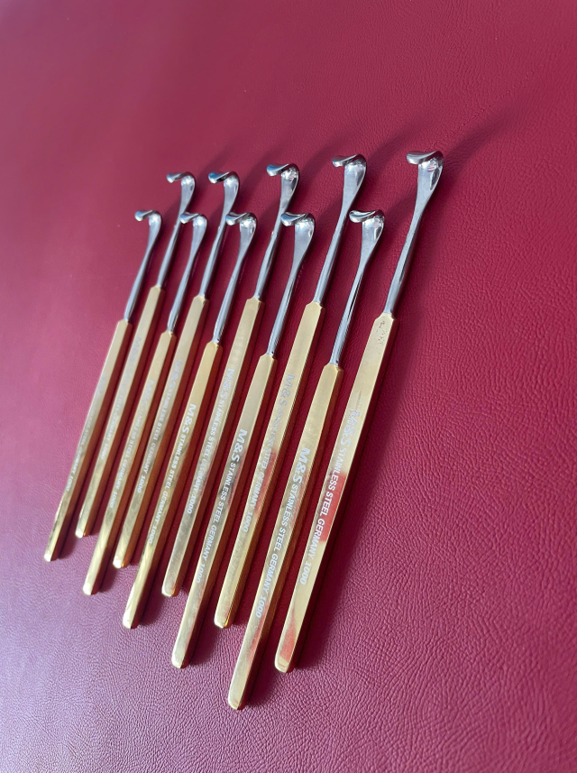 👉 Cây vén mí mắt, vén mỡ, vén cơ là dụng cụ phẫu thuật thẩm mỹ, dùng để tách, nâng và định hình các mô mềm như mí mắt, mỡ hoặc cơ.