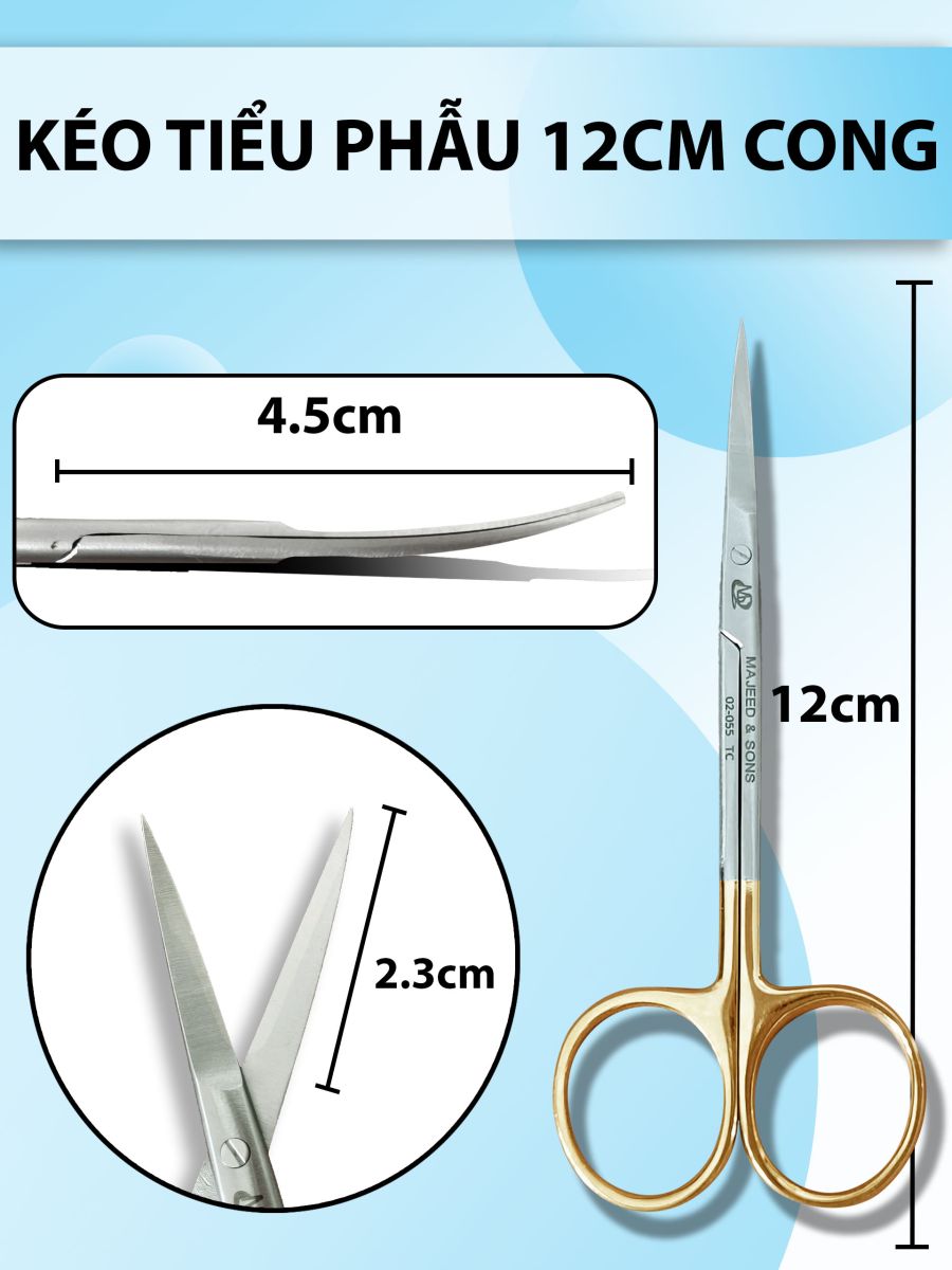 Kéo cắt da mí mắt 12cm cong , kéo cắt chỉ, kéo tiểu phẫu 12cm cong lưỡi mỏng nhọn