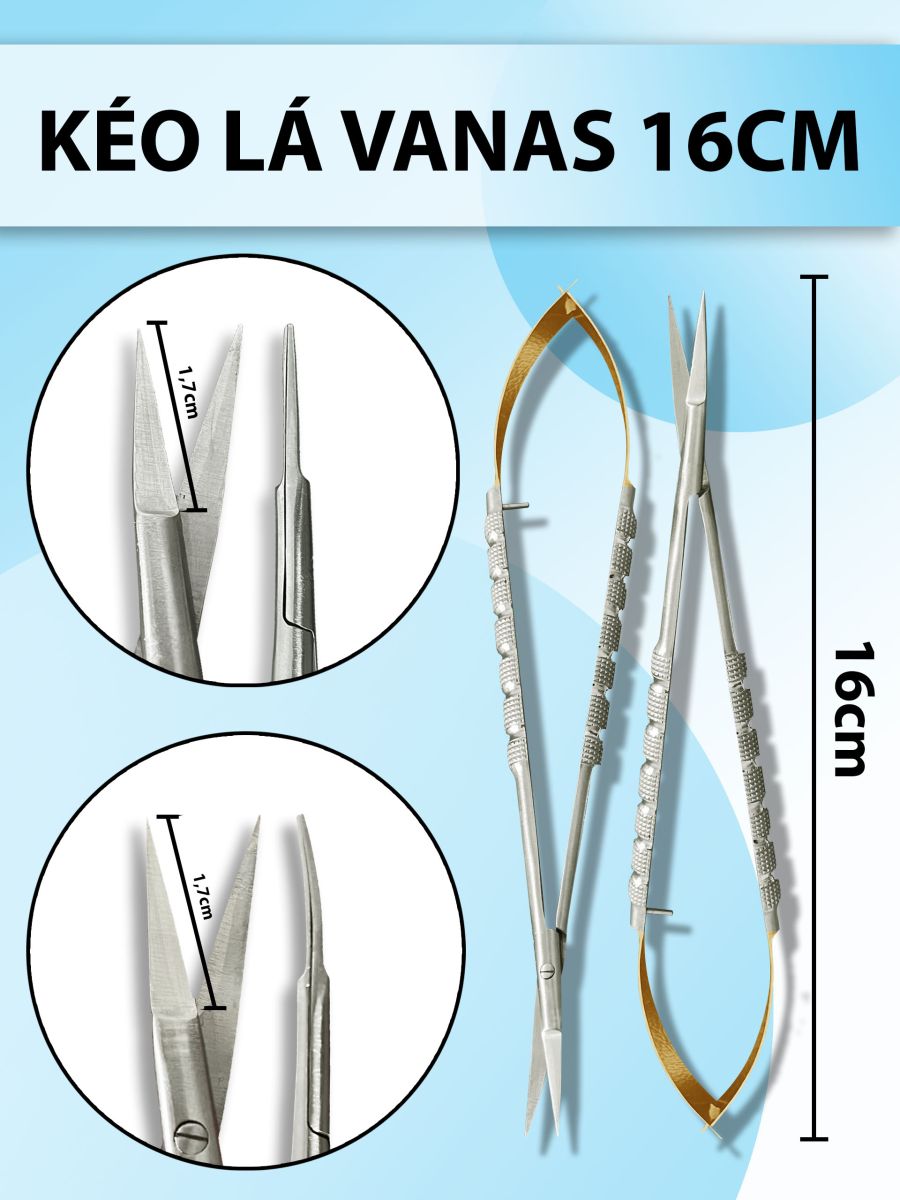 Kéo lá vanas 16cm, kéo vi phẫu ( thẳng, cong)