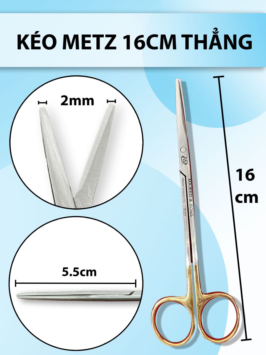 👉 Kéo metz 16cm thẳng, kéo đầu to thân dày cắt khoẻ, kéo bóc tách gân cơ