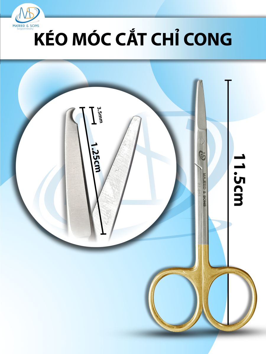 🔹 Đầu móc cong 3.5 mm: Dễ dàng móc và nâng chỉ lên trước khi cắt, hạn chế chạm vào mô
