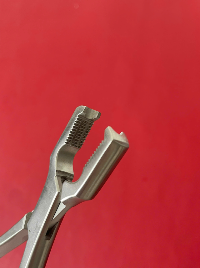 👉 Nhờ thiết kế hàm kẹp khỏe và tay cầm chắc chắn, kẹp giúp bác sĩ kiểm soát tốt vị trí xương, hỗ trợ nắn chỉnh, đặt nẹp–vít và thực hiện các thao tác phẫu thuật một cách chính xác và an toàn.
