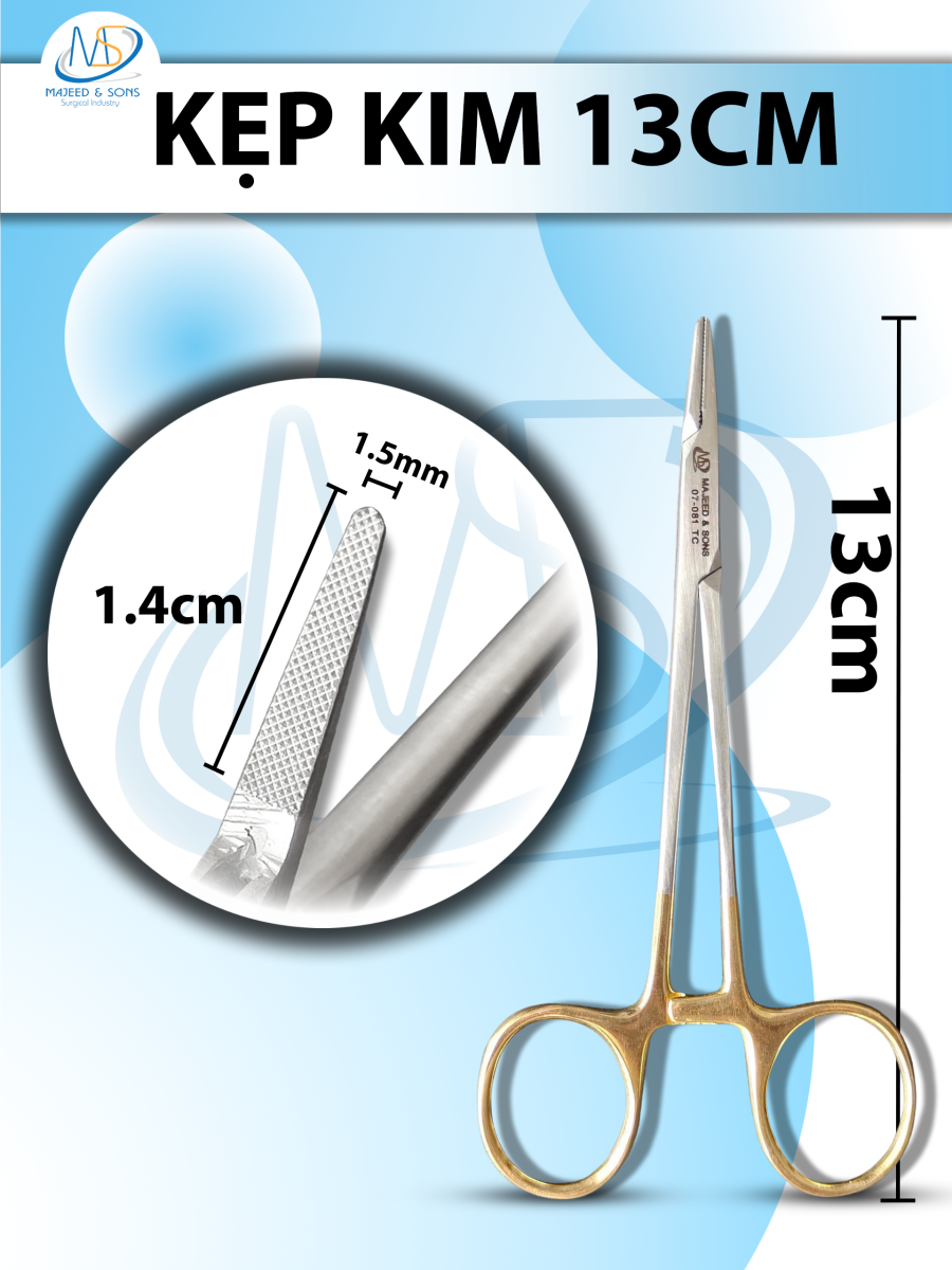 👉 Đối tượng sử dụng: Kẹp kim 13cm đầu kẹp D1.4cm R1.5mm Dùng trong y tế, bệnh viện, viện thẩm mỹ,...