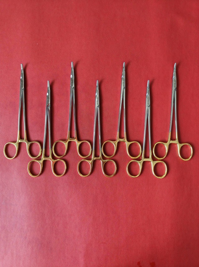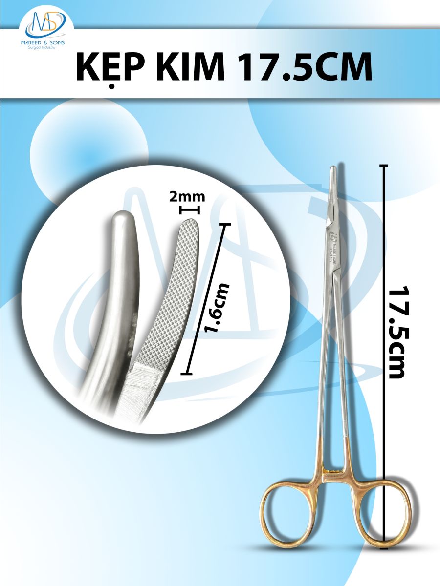 👉 Đối tượng sử dụng: Kẹp kim 17cm cong, đầu D1.6cm R2mm cán vàng có tips TC không cắn chỉ tuột chỉ Dùng trong y tế, bệnh viện, viện thẩm mỹ,...