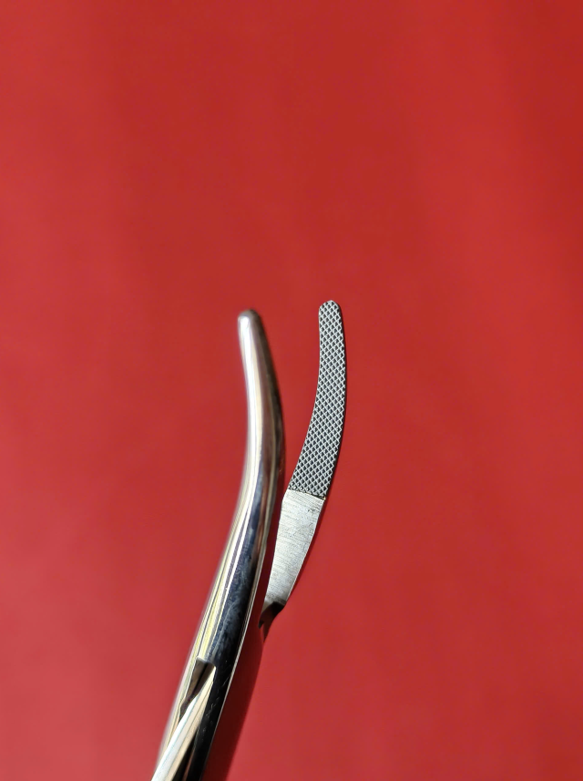 🔷 Kẹp kim 17cm cong, đầu D1.6cm R2mm cán vàng có tips TC không cắn chỉ tuột chỉ