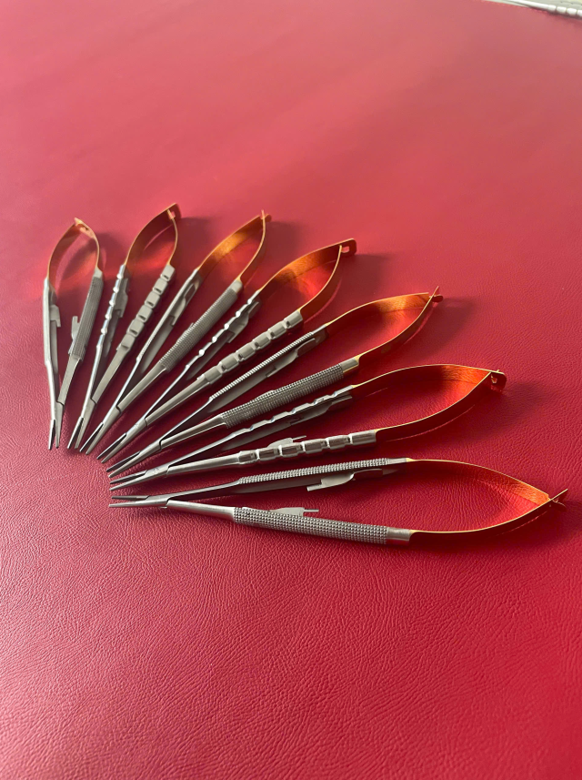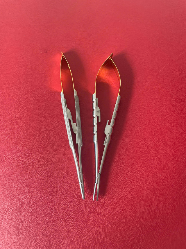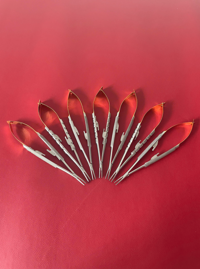 Đầu kẹp Vannas siêu nhỏ → giữ kim và chỉ chắc, không tuột