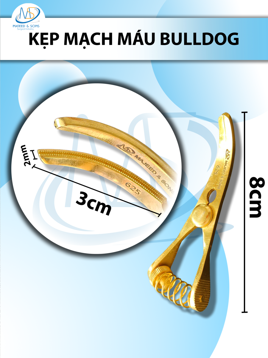 🔷 LƯU Ý: Kẹp mạch máu bulldog 8cm Cong, Dài 8cm r2 kẹp 3cm