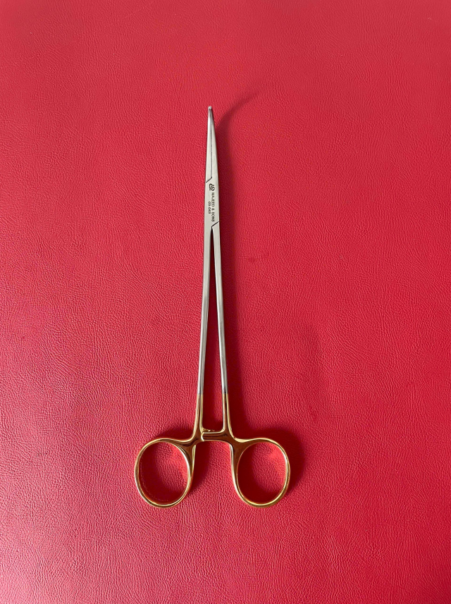 Kẹp xà mâu 18cm, pen kẹp cong 90 độ 18cm cán vàng bấm nhẹ tay