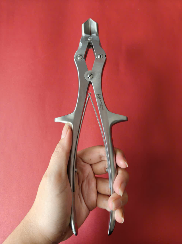 👉 Chiều dài 27 cm tạo lực đòn bẩy tốt, giúp bác sĩ cắt xương nhẹ nhàng hơn, đồng thời giảm tổn thương mô lân cận và tăng hiệu quả thao tác trong can thiệp ngoại khoa.
