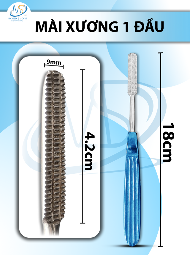 👉 Đối tượng sử dụng: Mài xương 1 đầu 18cm, đầu 4,2cmx0,9cm Dùng trong y tế, bệnh viện, viện thẩm mỹ,...