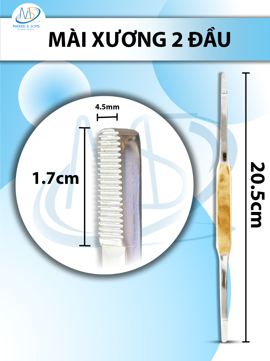 🔷 Mài xương 2 đầu Dài 20,5cm, đầu D1,7CM R4,5MM