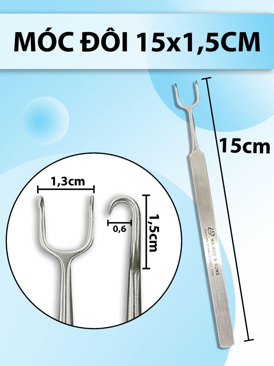 👉 Tên SP: Móc đôi 15x1.5cm, móc phẫu thuật, móc vén vết mổ 👉 Chất liệu:Thép không gỉ