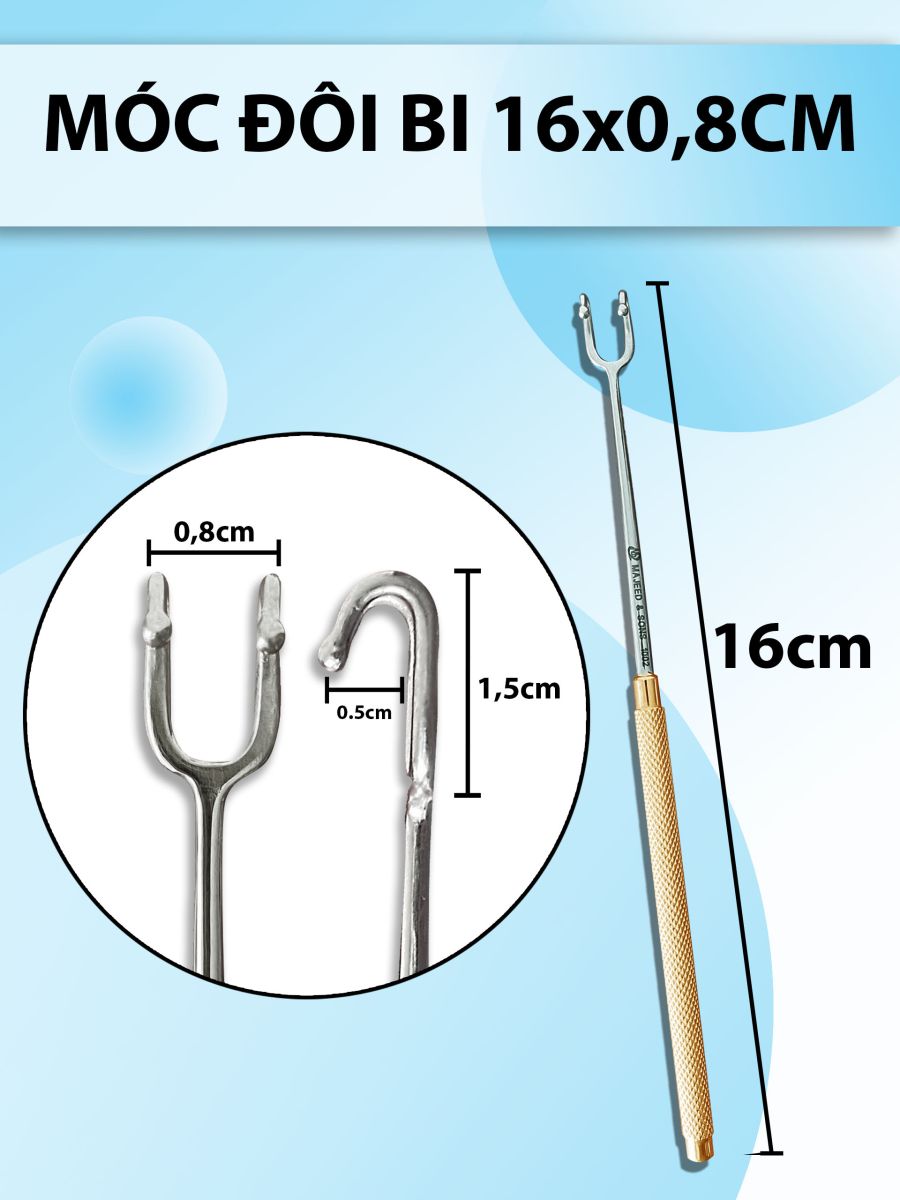 🔷 LƯU Ý: Móc đôi bi 16x0,8cm , móc phẫu thuật, bồ cào vén mô