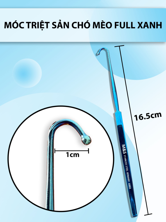 👉 Móc triệt sản chó mèo 16,5cmx1cm , móc tử cung chó mèo full xanh Phù hợp cho chó, mèo kích thước nhỏ và trung bình
