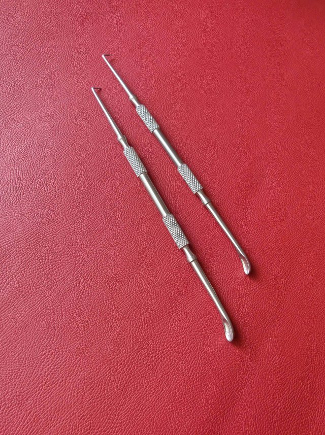 Nạo ổ, banh phẫu nhỏ Dài 15,2cm, đầu nạo d1xr0,5cm, Đầu banh nhọn d0,6cm