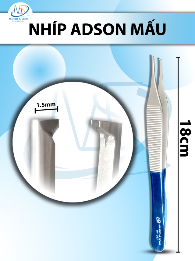 🔷 LƯU Ý: Nhíp Adson 18cm Mấu, đầu nhíp 1,5mm
