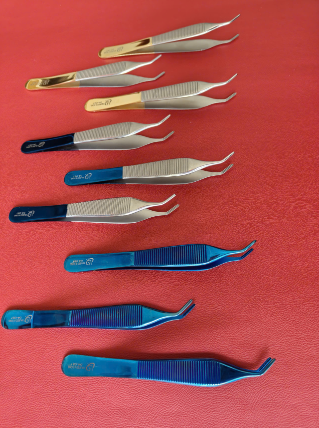 👉 Tên SP: Nhíp adson debakey Dài 12,5cm, đầu D1cmxR1mm (cán vàng, full xanh, cán xanh)