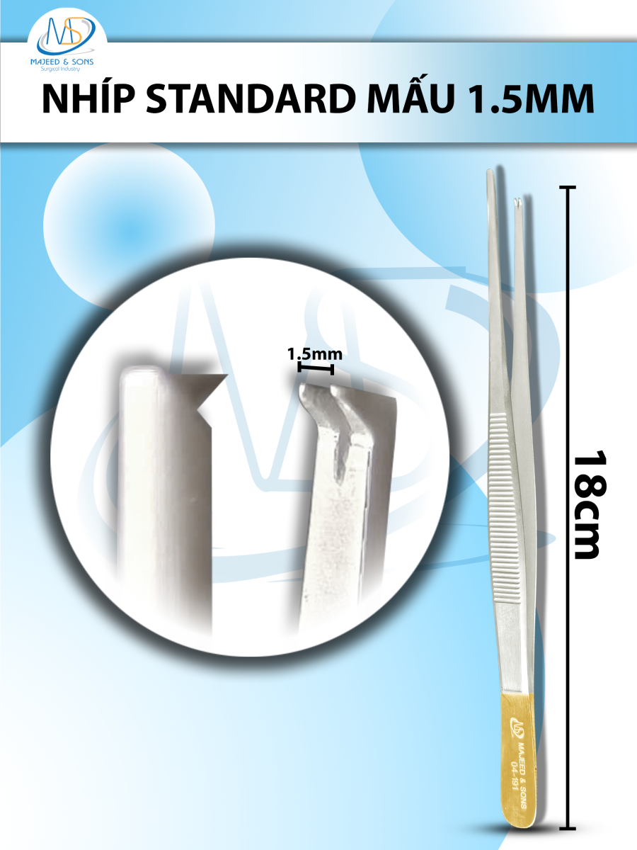 👉 Đối tượng sử dụng: Nhíp standard Mấu, Nhíp phẫu tích Mấu 18cm, đầu nhíp R1,5mm. Dùng trong y tế, bệnh viện, viện thẩm mỹ,...
