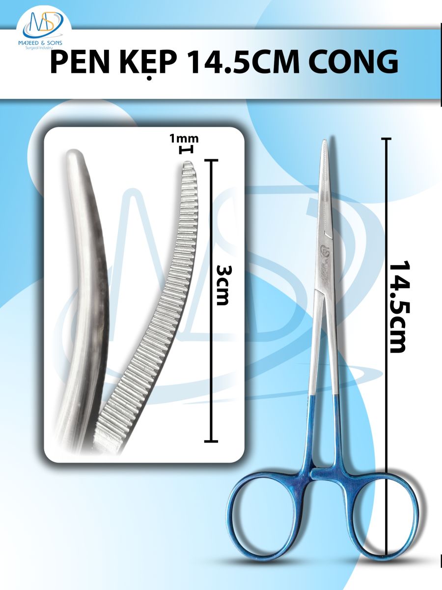 👉 Đối tượng sử dụng: Pen kẹp 14.5cm cong, đầu D3cm R1mm cán xanh. Dùng trong y tế, bệnh viện, viện thẩm mỹ,...