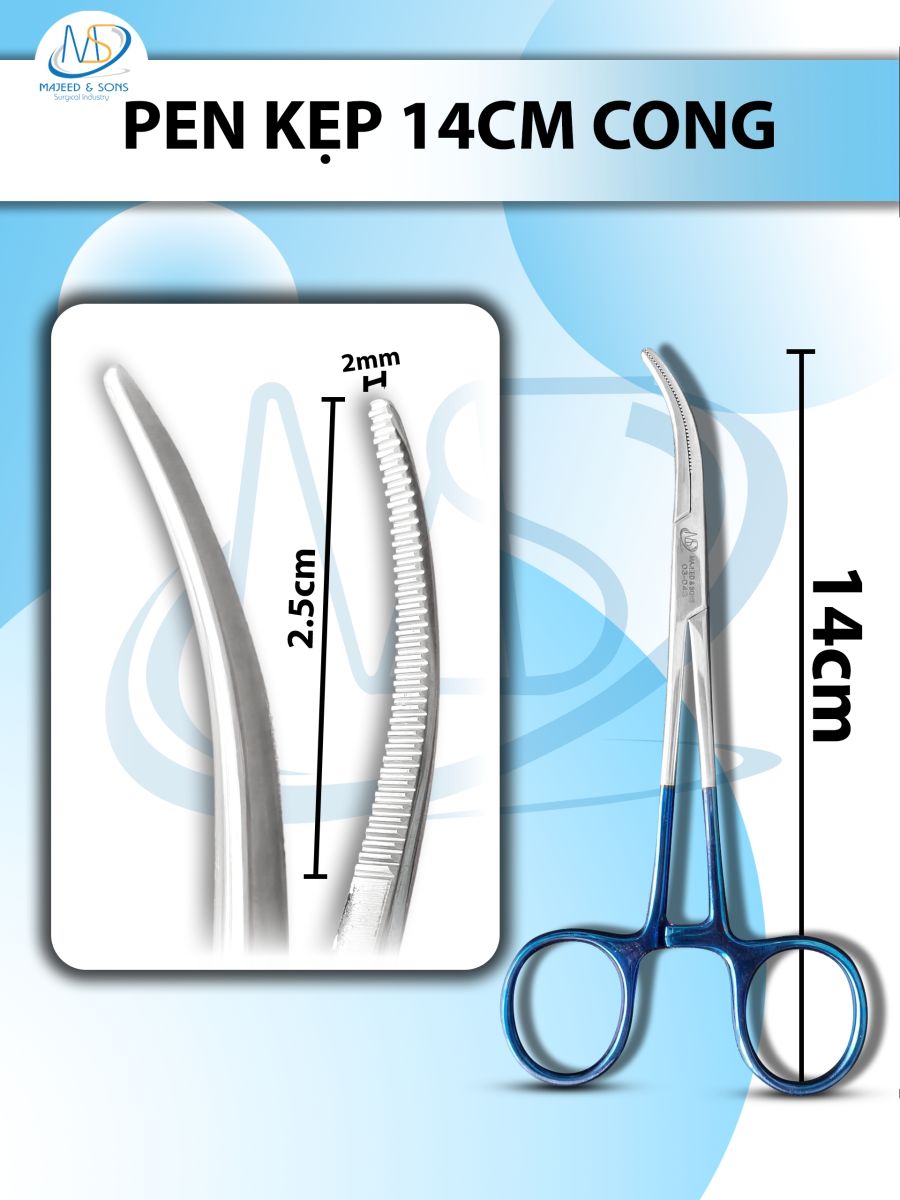 👉 Đối tượng sử dụng: Pen kẹp cong 14cm, đầu D2.5cm R2mm. Dùng trong y tế, bệnh viện, viện thẩm mỹ,...