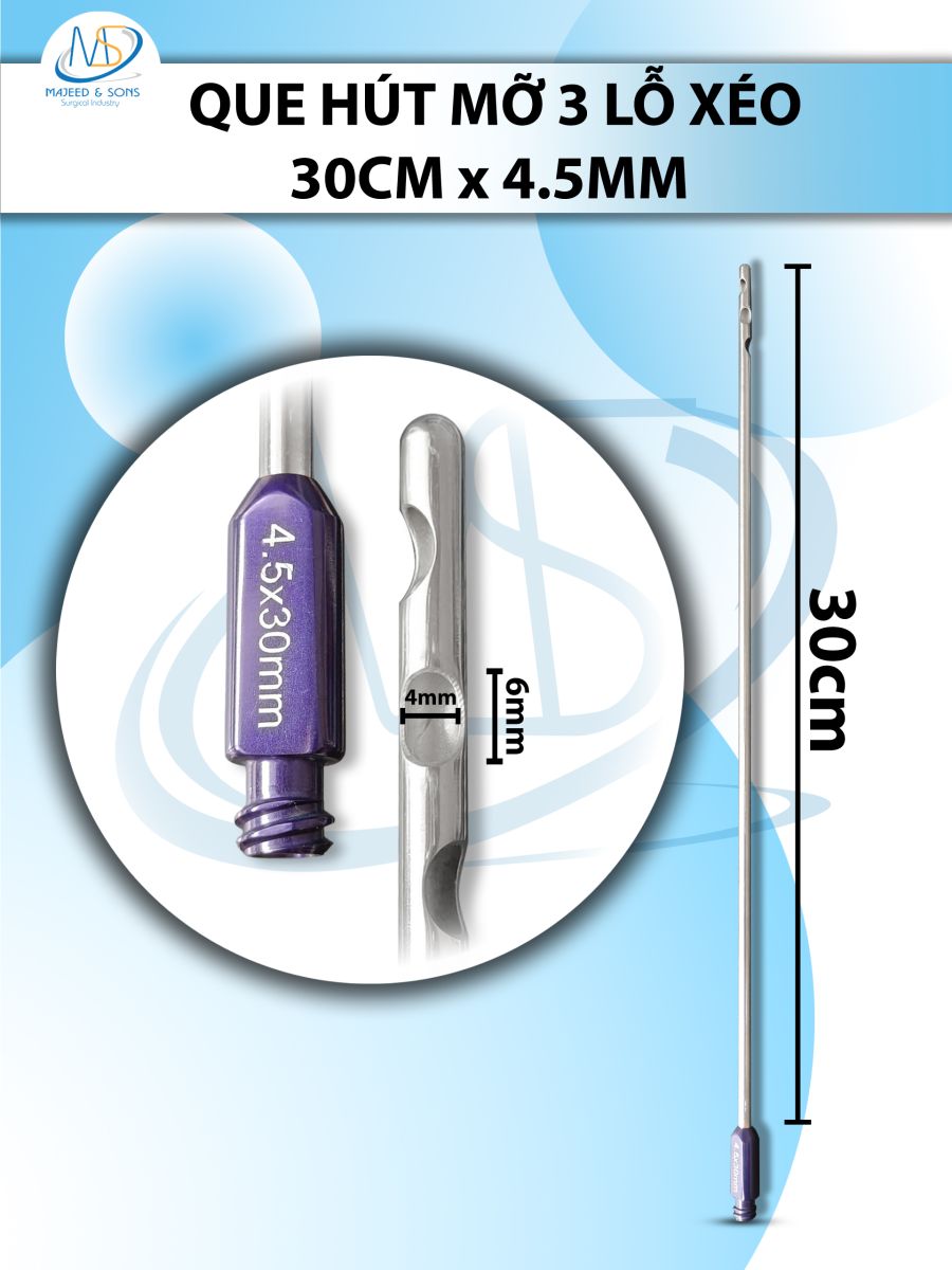 🔷 Que hút mỡ 30cm x 4.5mm 3 lỗ tròn xéo D6 D4