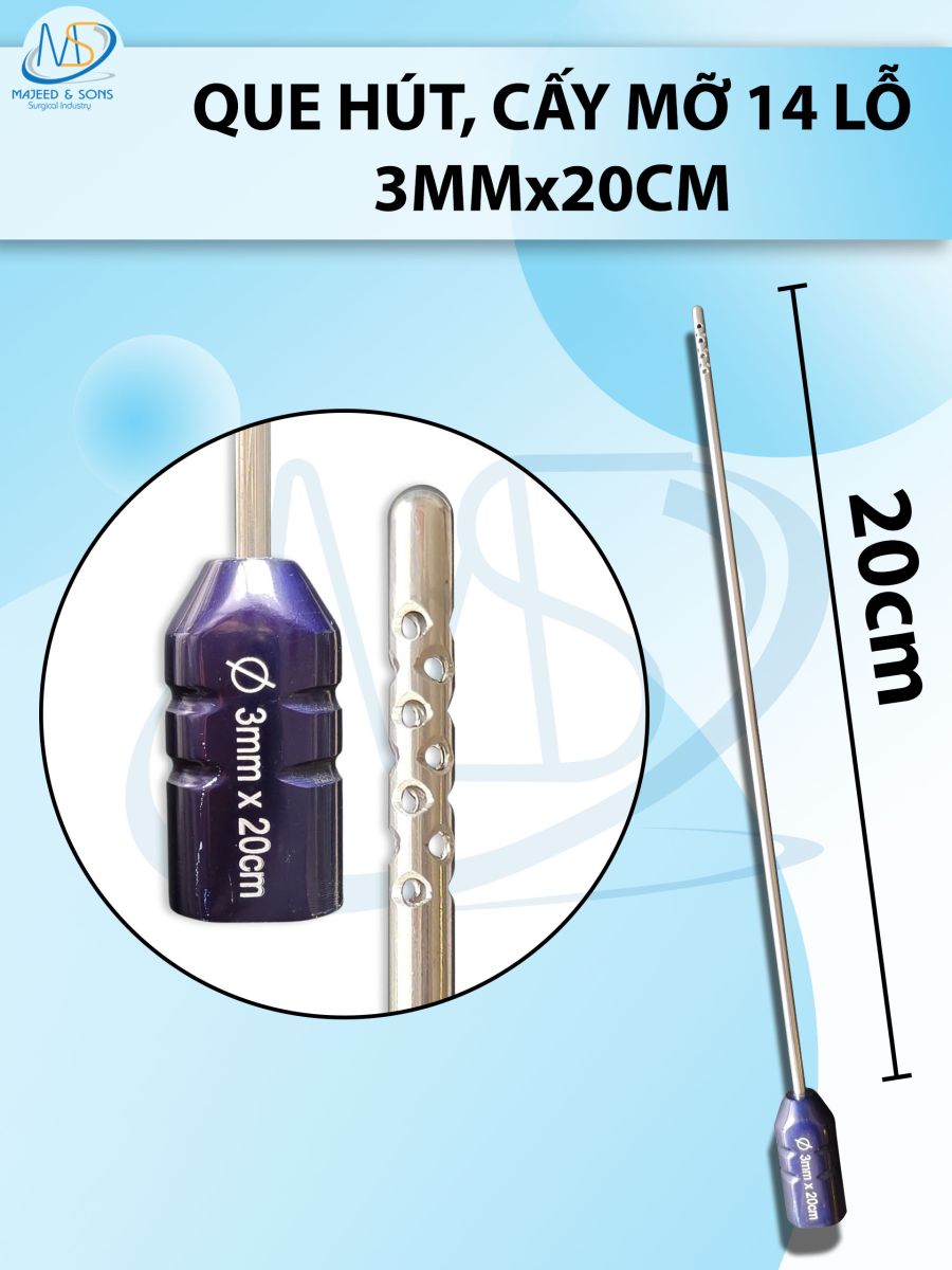 🔷 LƯU Ý: Que hút mỡ cấy 14 lỗ, lỗ sắc bén cắt mỡ tốt 3mmx20cm
