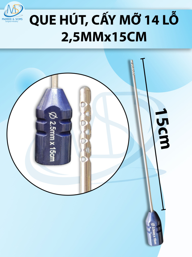 🔷 LƯU Ý: Que hút mỡ cấy 14 lỗ, que hút lỗ sắc bén cắt mỡ tốt 2,5mmx15cm
