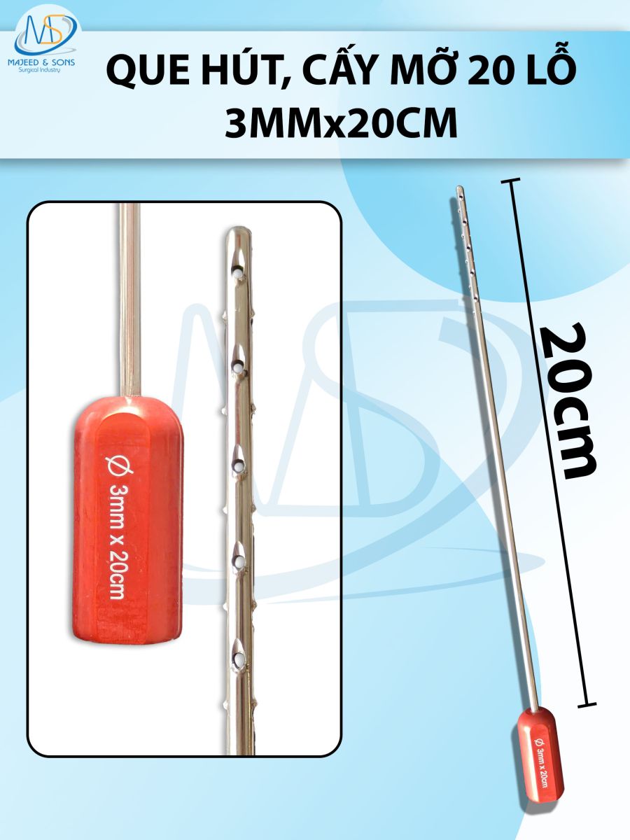 🔷CHÍNH SÁCH MUA HÀNG: Que hút mỡ cấy 20 lỗ, lỗ sắc bén cắt mỡ tốt 3mmx20cm, lỗ 1x1mm cán đỏ