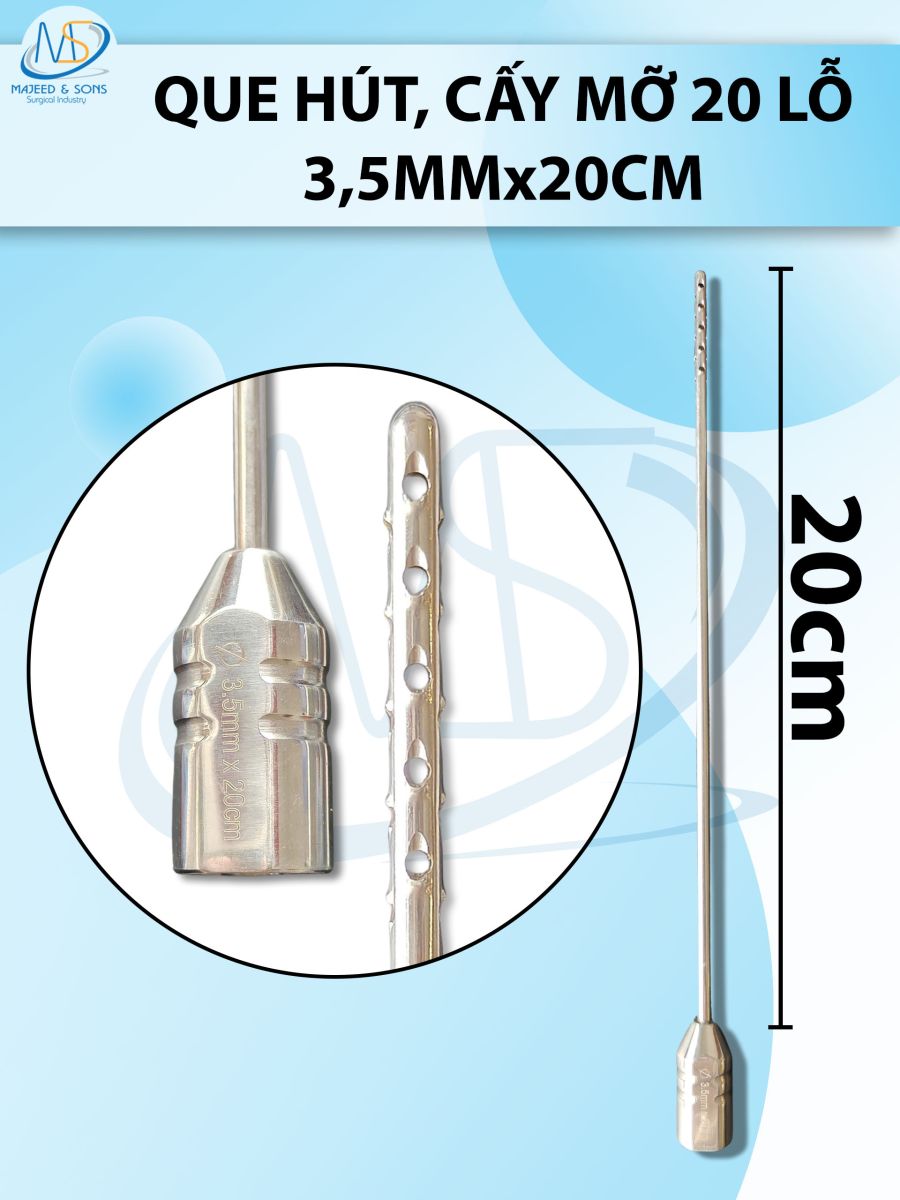 🔷 Que hút mỡ cấy 20 lỗ, que hút lỗ sắc bén cắt mỡ tốt 3,5mmx20cm, 1,5x1,5mm