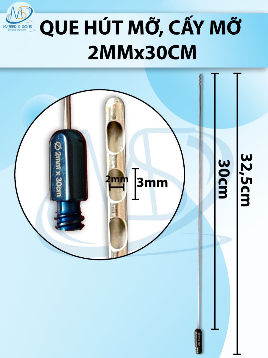 👉 Que hút mỡ, cấy mỡ 2mm x 30cm 3 lỗ D3mm R2mm dài 32,5cm