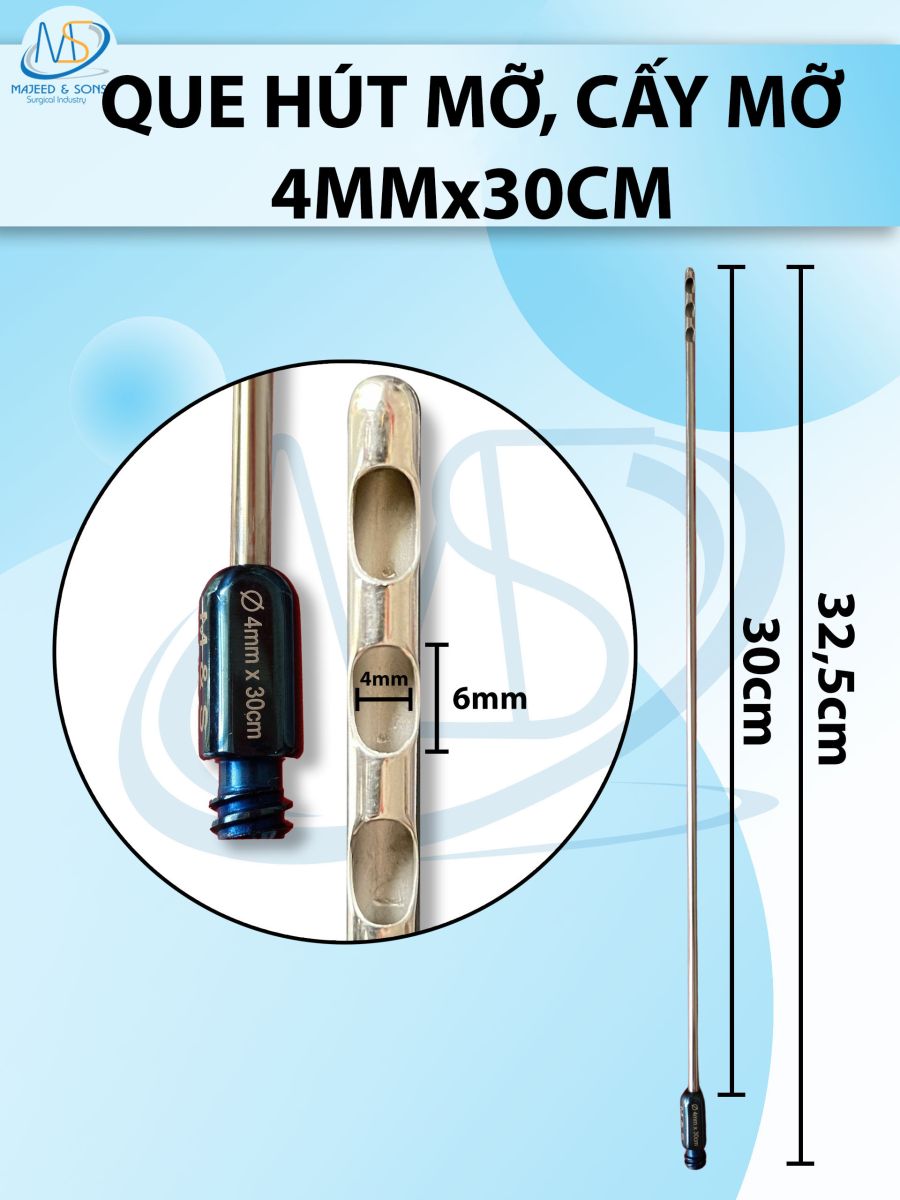👉 Que hút mỡ, cấy mỡ 4mm x 30cm 3 lỗ D6mm R4mm dài 32,5cm
