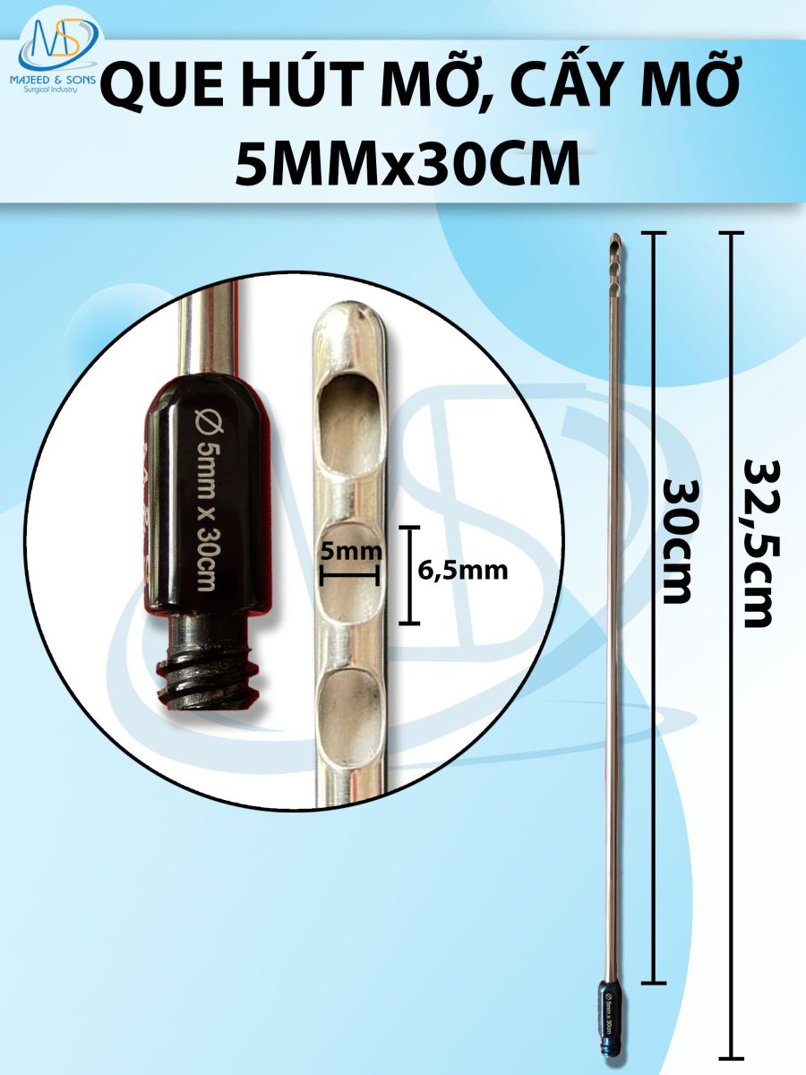 🔷 LƯU Ý: Que hút mỡ, kim hút mỡ 3 lỗ 5mm x 30cm, lỗ D6,5mm R5mm dài