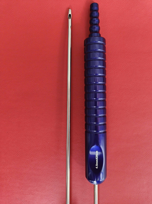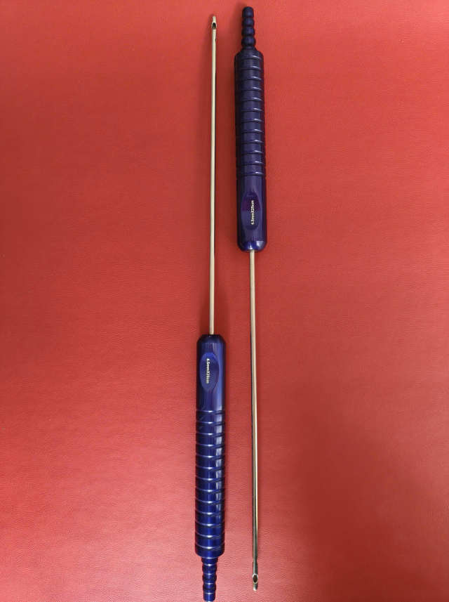 🔷 Que hút mỡ tay cầm 4,5mmx25cm, 3 lỗ tháp tròn, lỗ to d6mmxr4,5mm, 2 lỗ nhỏ d5mmxr4mm