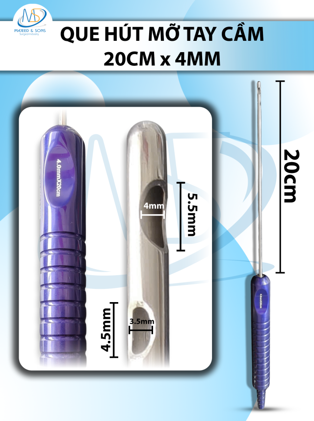 👉 Đối tượng sử dụng: Que hút mỡ tay cầm 4mmx20cm, 3 lỗ tháp tròn, lỗ to d5,5mmxr4mm, 2 lỗ nhỏ d4,5mmxr3,5mm Dùng trong y tế, bệnh viện, viện thẩm mỹ,...